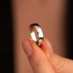 Обручальное кольцо из белого золота рифленое 510‑000‑090