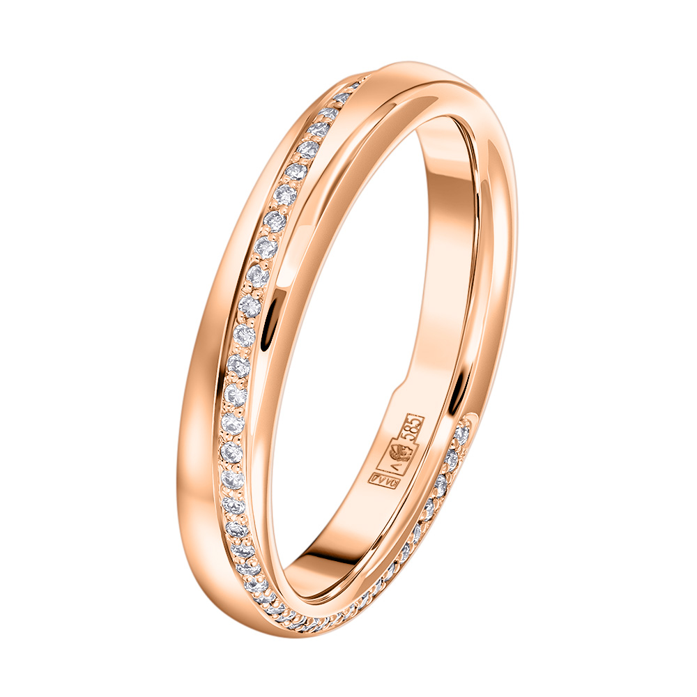 Обручальное кольцо из красного и белого золота с бриллиантами 9111082‑2Б