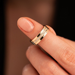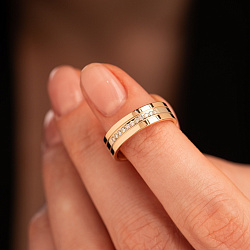 Кольцо широкое из желтого золота с бриллиантами 931645Б