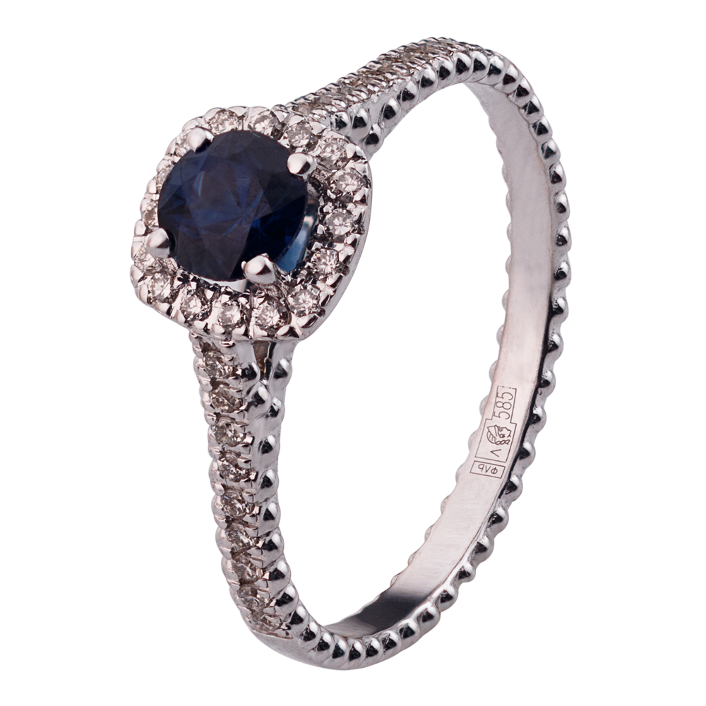 Кольцо из белого золота 585 пробы с сапфиром и бриллиантами 921812С