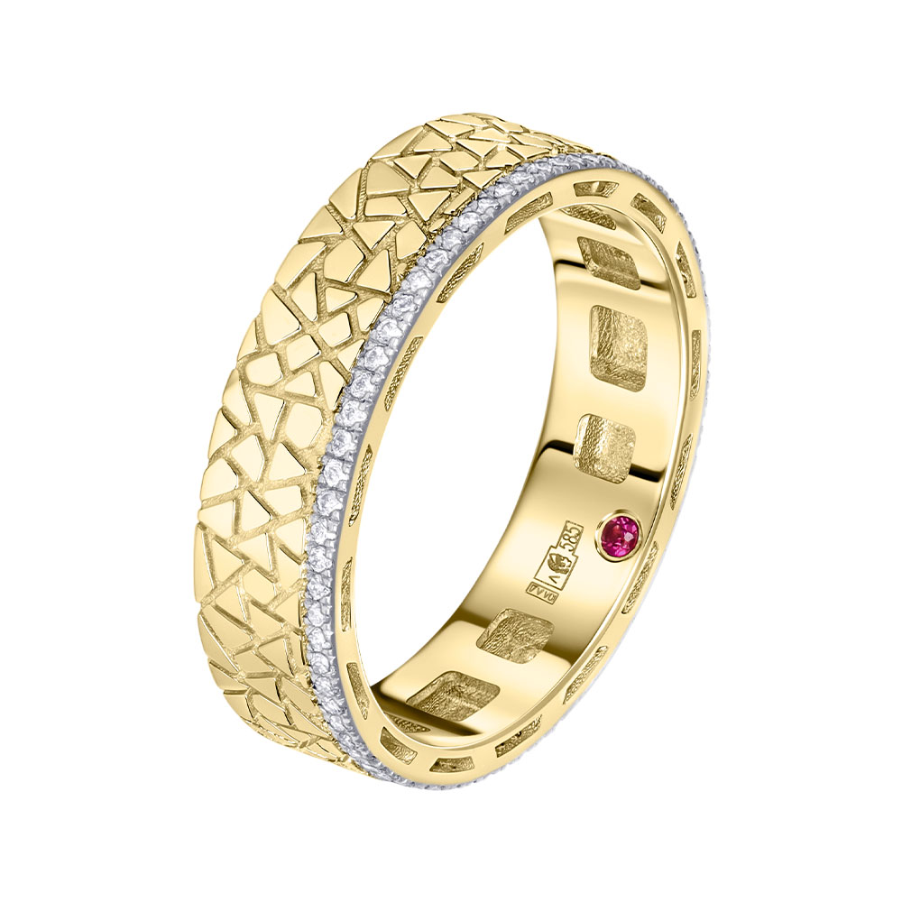 Кольцо из желтого золота с бриллиантами и рубином 9311069Б
