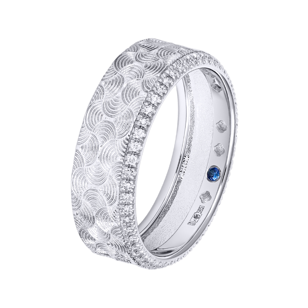 Обручальное кольцо из белого золота с бриллиантами и сапфиром 9211043Б