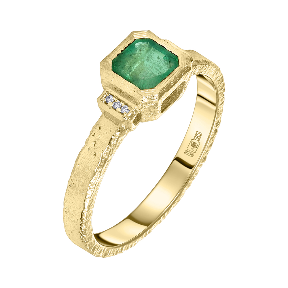 Кольцо из желтого золота с бриллиантами и изумрудом 9311080И