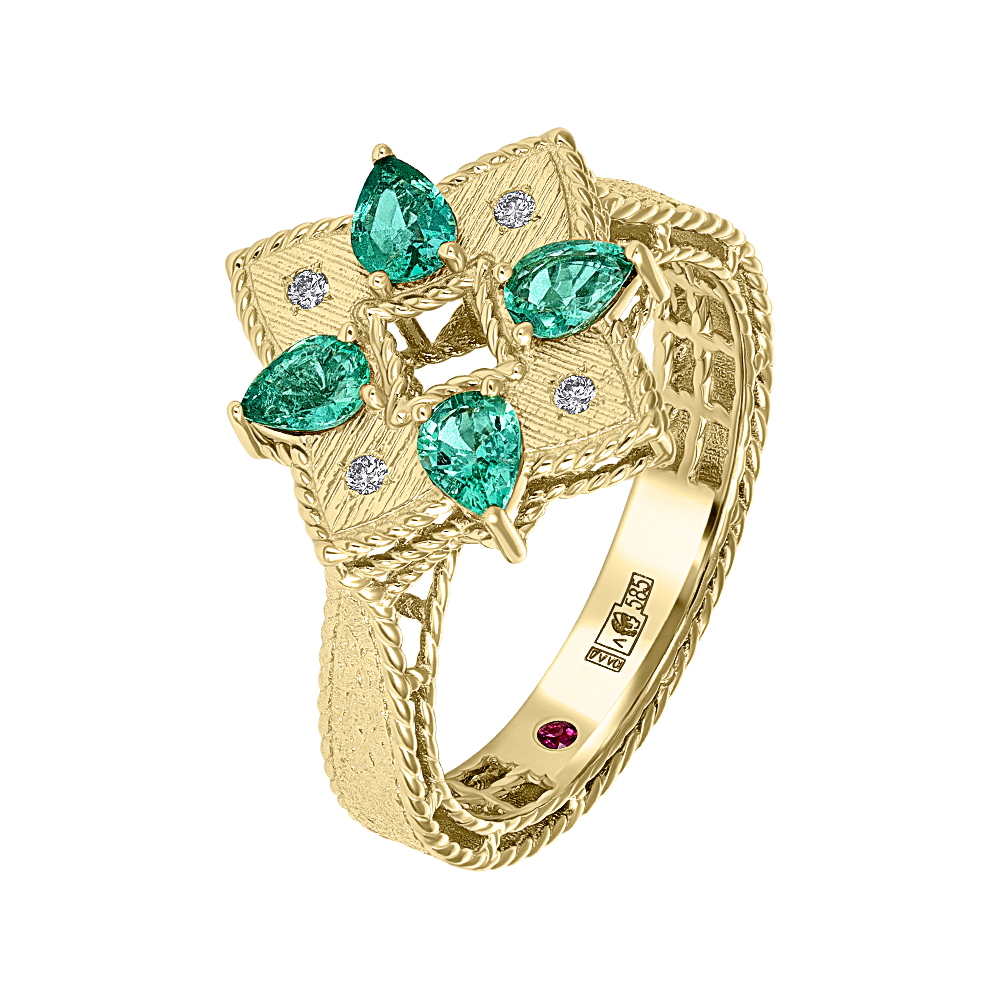 Кольцо из желтого золота с изумрудами и бриллиантами 931923И