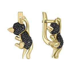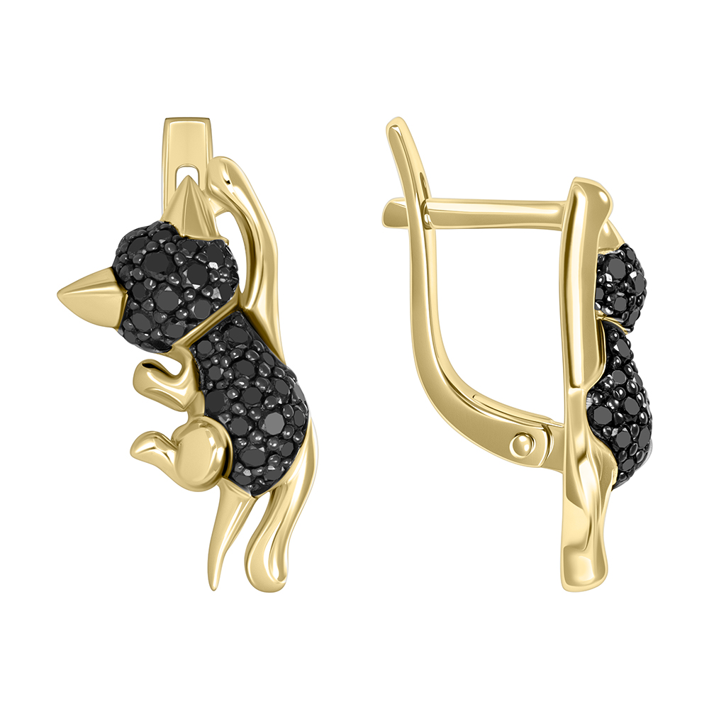 Серьги из желтого золота с черными бриллиантами 9321048Б