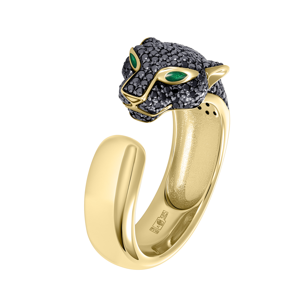 Кольцо из желтого золота с черными бриллиантами 931898ЧБ