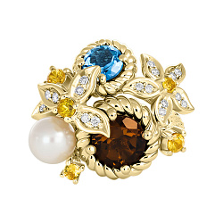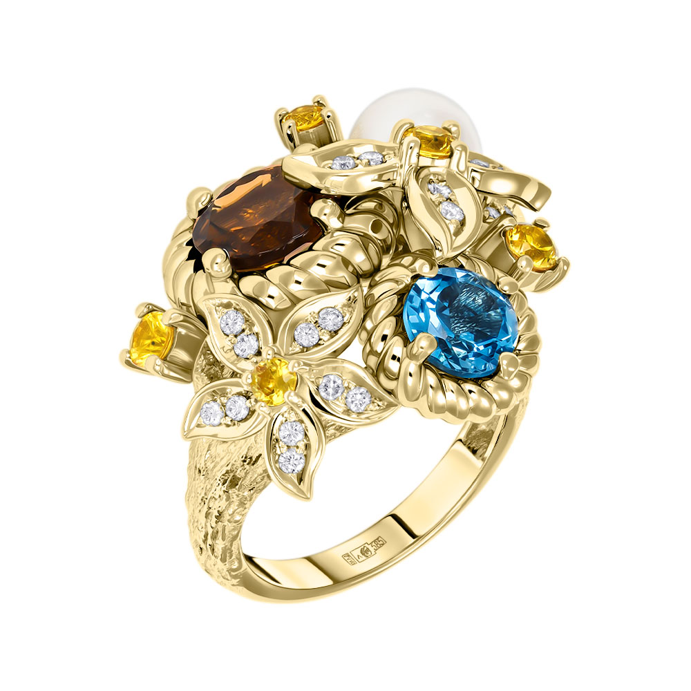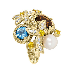 Кольцо с бриллиантами жемчугом и самоцветами 931791