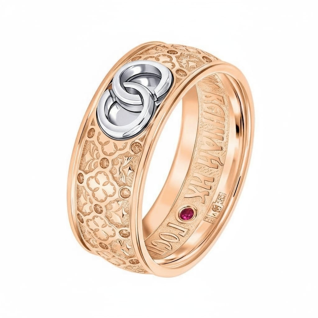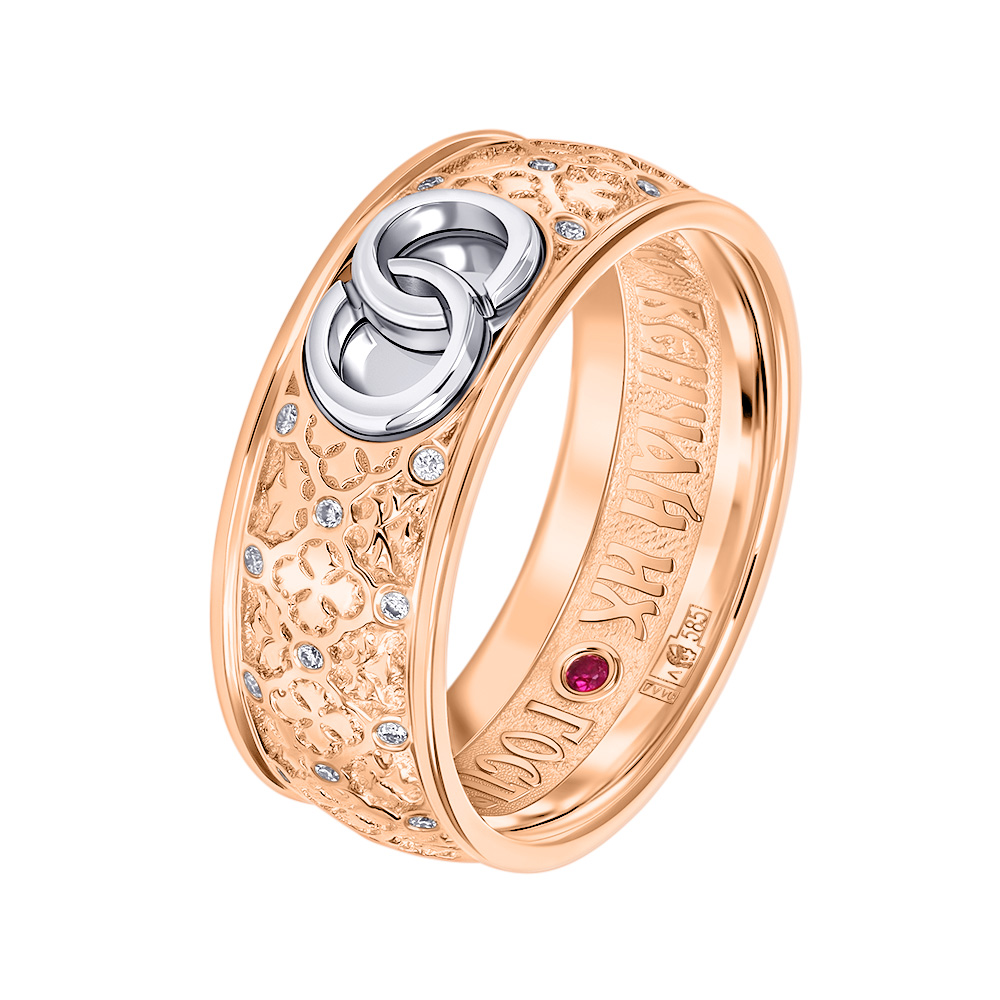 Обручальное кольцо комбинированное с бриллиантами и рубином 9111025‑2Б
