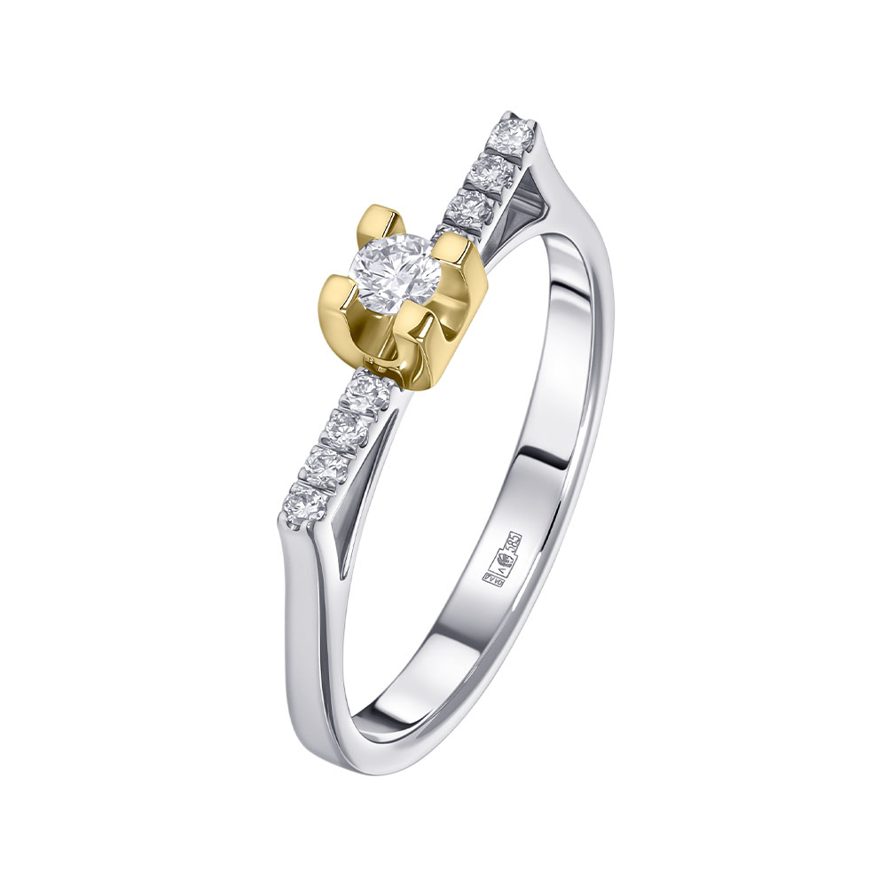 Кольцо из желтого и белого золота с бриллиантами 9211054Б