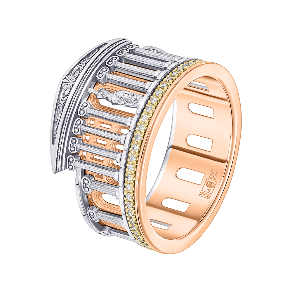 Кольцо из красного и белого золота с бриллиантами 9111072Б