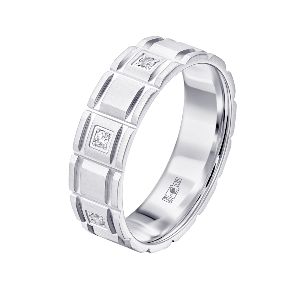 Фактурное обручальное кольцо с бриллиантами 911855Б