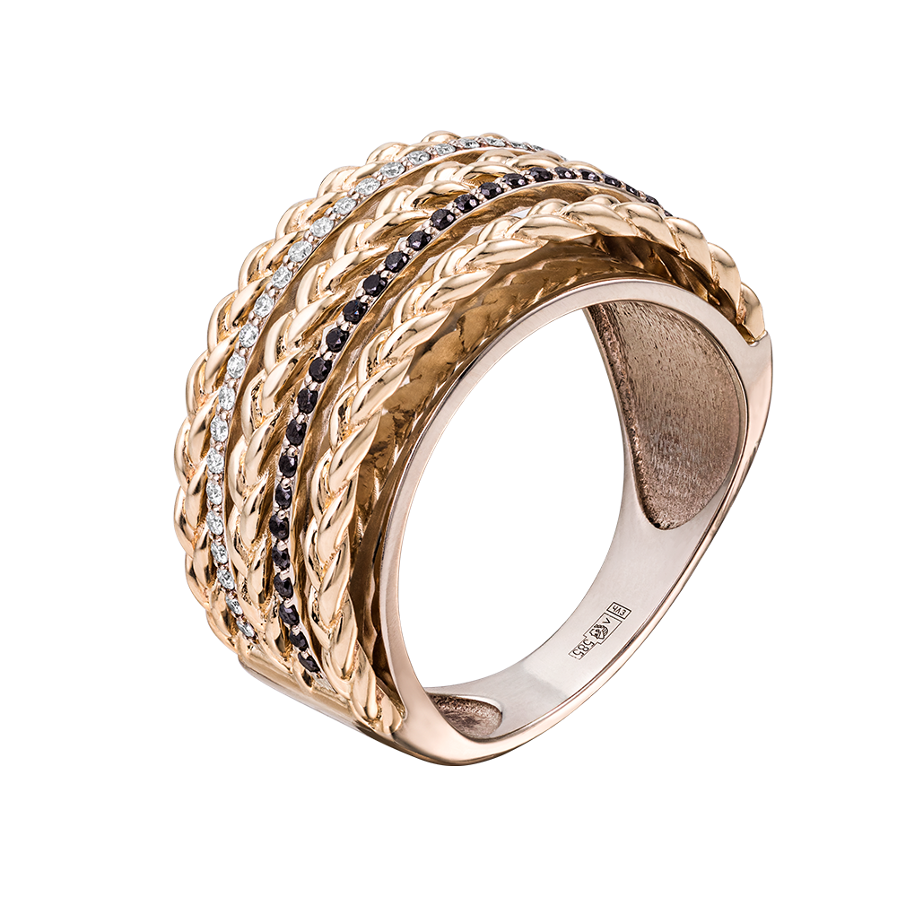Дизайнерское кольцо с плетением и дорожками бриллиантов 921698Чб