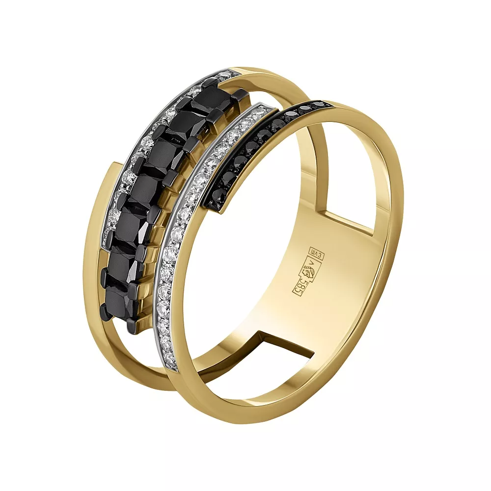 Кольцо из желтого золота с черными бриллиантами 931753‑2ЧБ